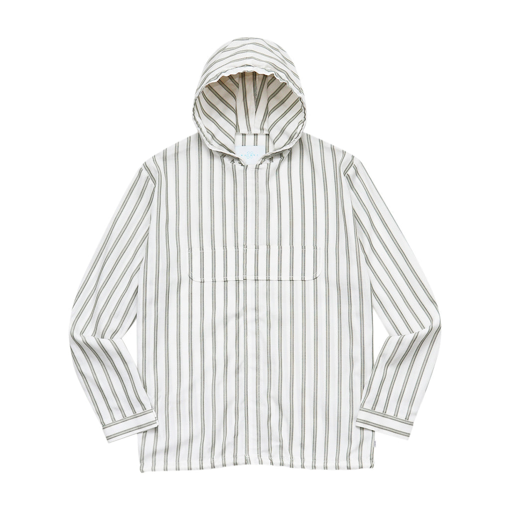 Inspired by the French Army's snow camo anorak, this shirt has a Velcro closure instead of buttons or zips. This unusual shirt, which was created because it is specialized to be taken on and off, can be worn in a variety of ways to add a great accent to your style. The clean body width and slightly short sleeve length make it less bulky and gives a sleek impression when used as an inner layer.