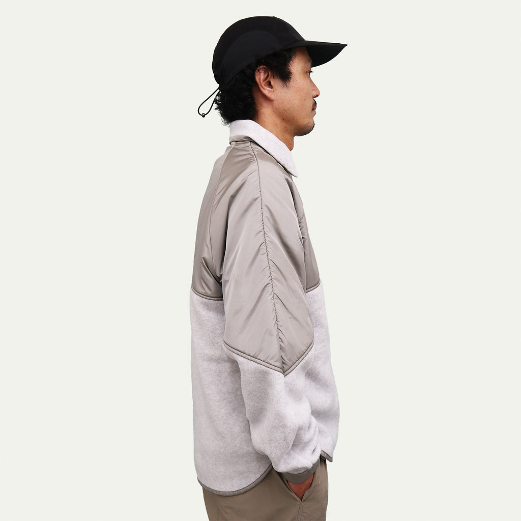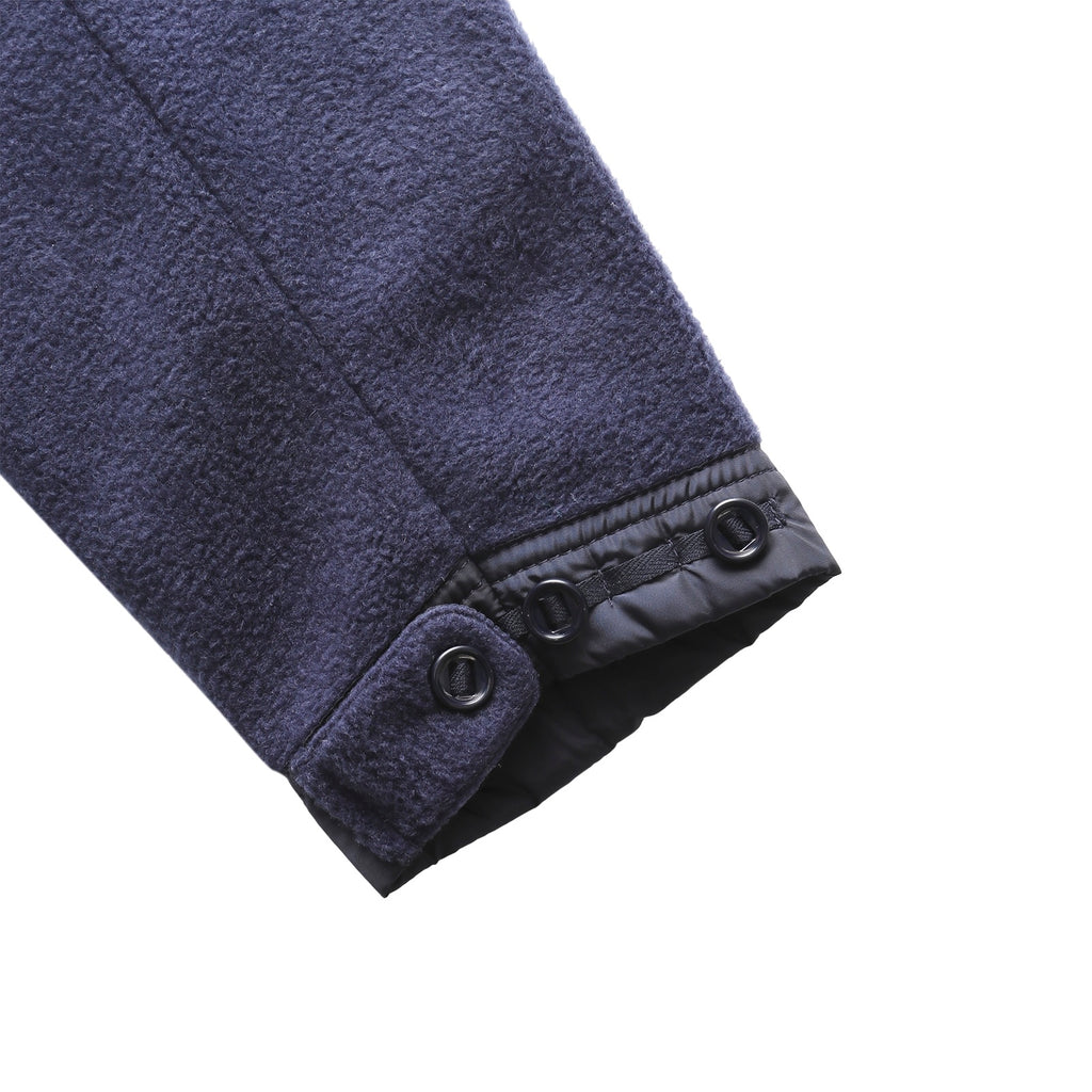 Retaining the signature details—the snap buttons at the collar, parachute buttons at the cuffs, and the rounded back panel—this piece was reconstructed for the 25AW season into a simple yet impactful garment. The length is slightly cropped, with a generously cut body width and sleeve width allowing for stress-free layering over sweatshirts or other innerwear.