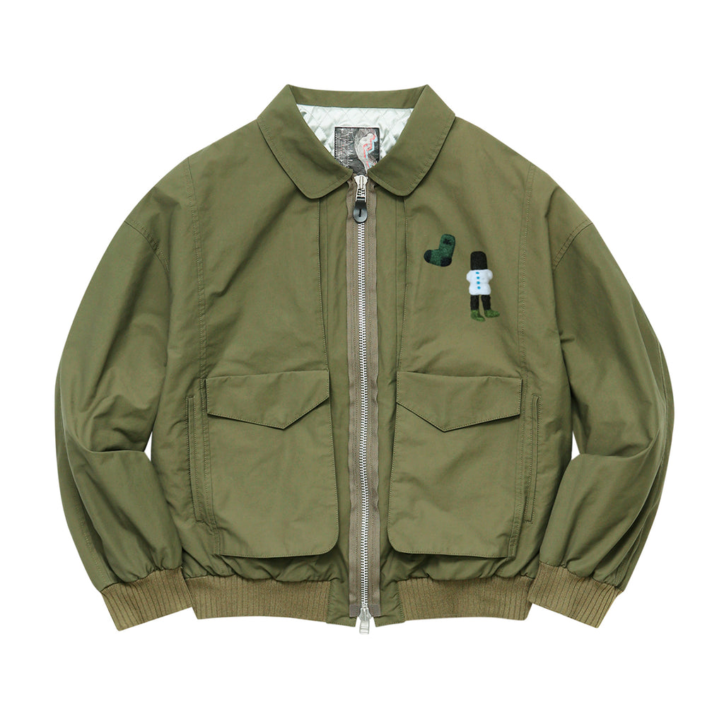 A playful felt patch adorns the chest, adding a subtle accent to the simple military-inspired design. The quilted lining ensures warmth while the silhouette maintains a streamlined volume. Versatile enough for daily wear to outdoor adventures. The body width offers a relaxed fit, balanced by a compact length.