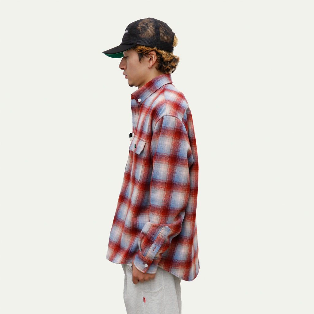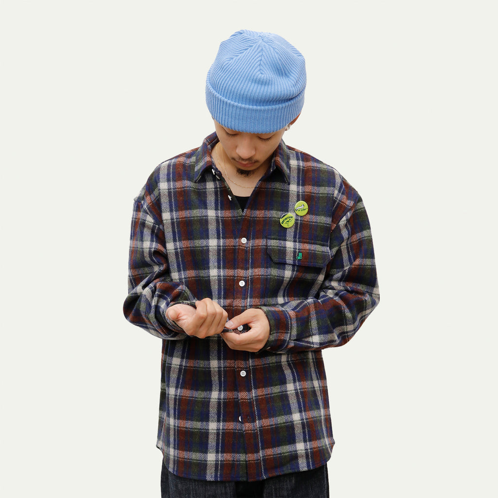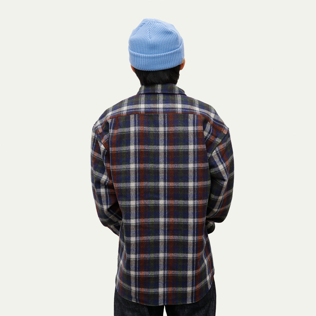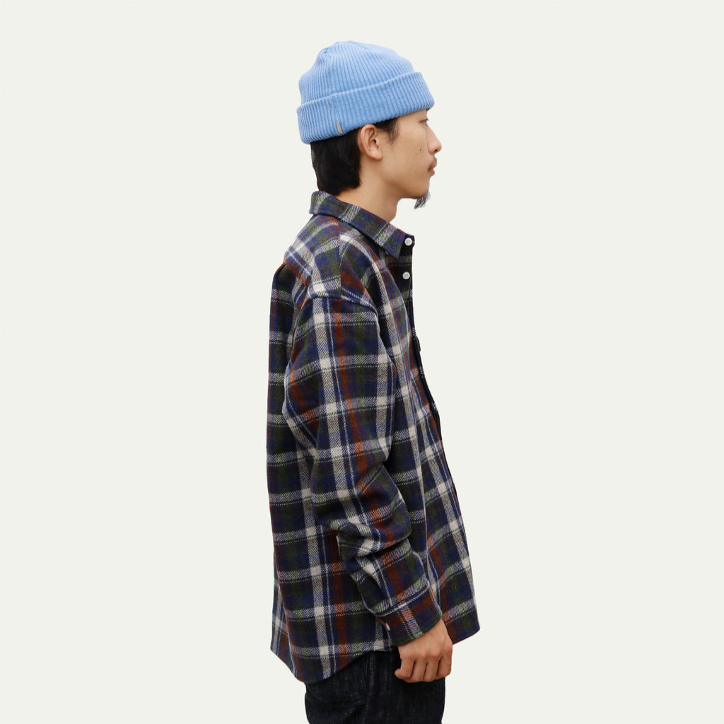 We encourage you to enjoy the evolving look of our heavyweight flannel shirts as they soften with wear—whether you deliberately size up or down. Accessories vary by color. How you style it is up to you. With generous room in the body and armholes, yet a clean, streamlined length, this piece layers effortlessly.